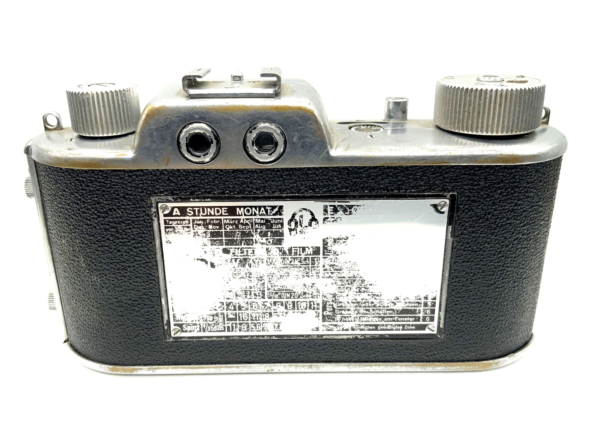 This analog viewfinder camera is technically functional. The shutter, release, film advance, and, if applicable, the light meter have been tested. Due to visible signs of use—such as scratches, dull spots, or minor dents—its condition has been rated as "Acceptable." The viewfinder may be cloudy or dusty.