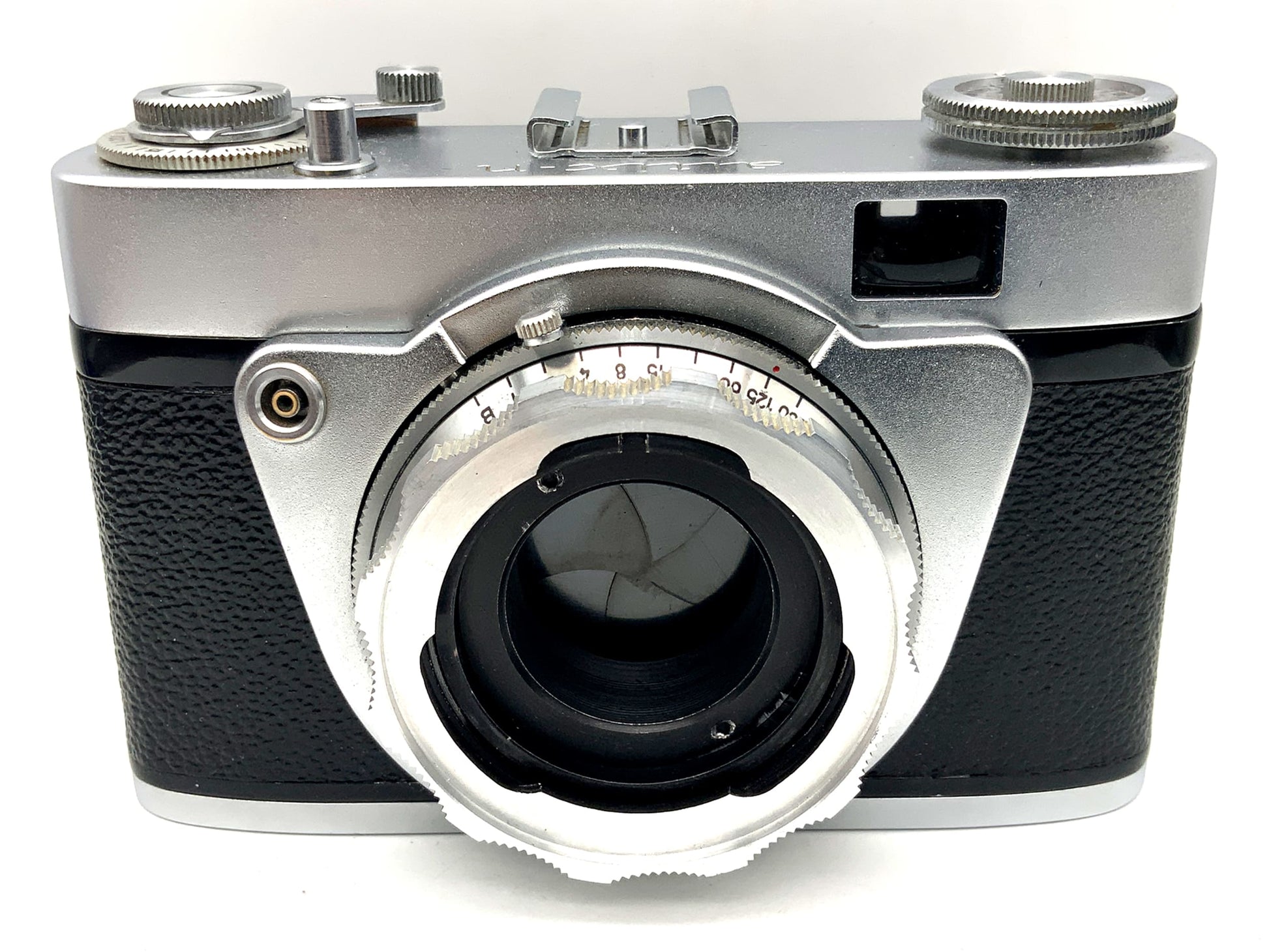 This classic analog viewfinder camera has been technically inspected and is in "Good" condition. The shutter, release, film advance, and—if equipped—the light meter function reliably. The body shows only minor signs of wear consistent with its age. The viewfinder may be slightly dusty or cloudy—typical for its age, but without affecting its function.