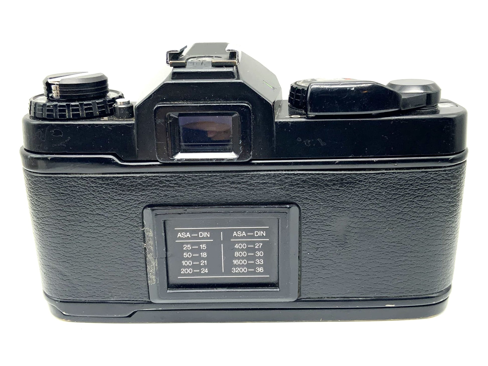 The analog SLR camera offered here has been technically inspected and is in good used condition. All relevant functions – including shutter release, film advance, shutter mechanism, and (where equipped) light meter – have been tested and work reliably. Minor signs of use, such as scratches or scuffs on the body, may be present, but these do not affect its functionality. A detailed explanation of our condition categories can be found in our FAQ for analog cameras .