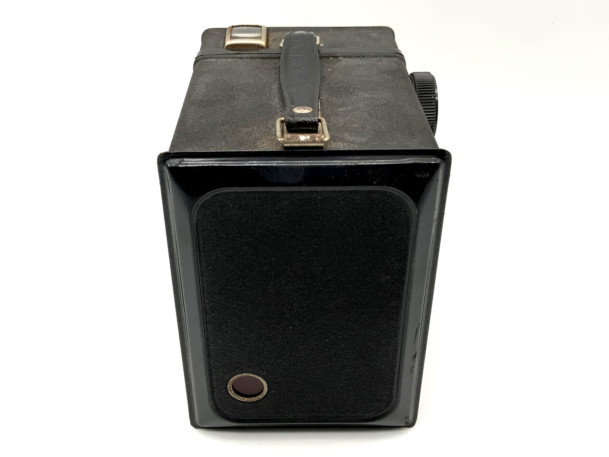 This classic box camera has been carefully inspected by us and is in perfect working order. The mechanical shutter works reliably. The body shows only slight signs of age-related wear.
