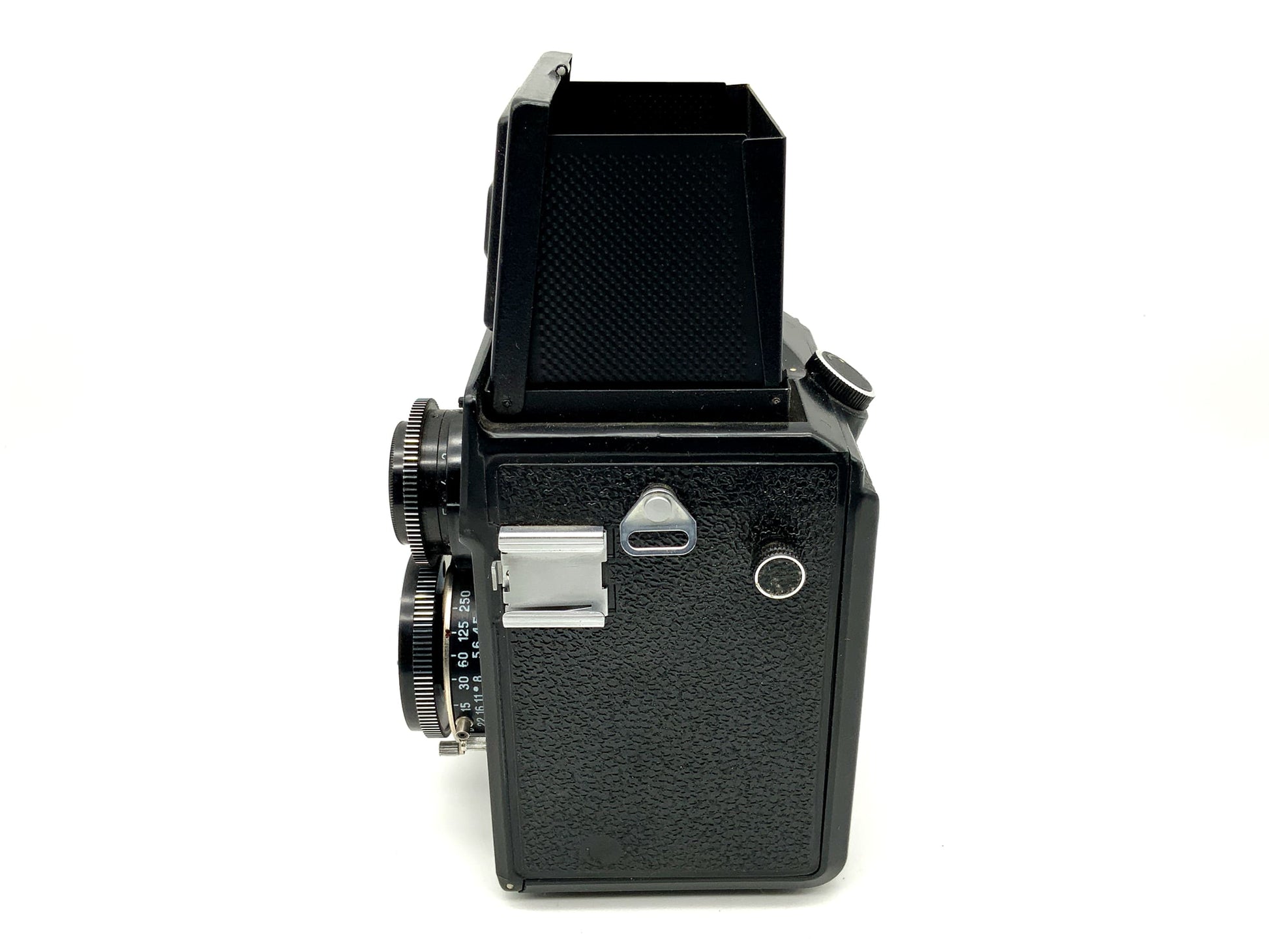 This classic TLR camera is no longer functional. The shutter is unresponsive, the film transport is jammed, or other technical defects are present. It is unsuitable for photographic use.