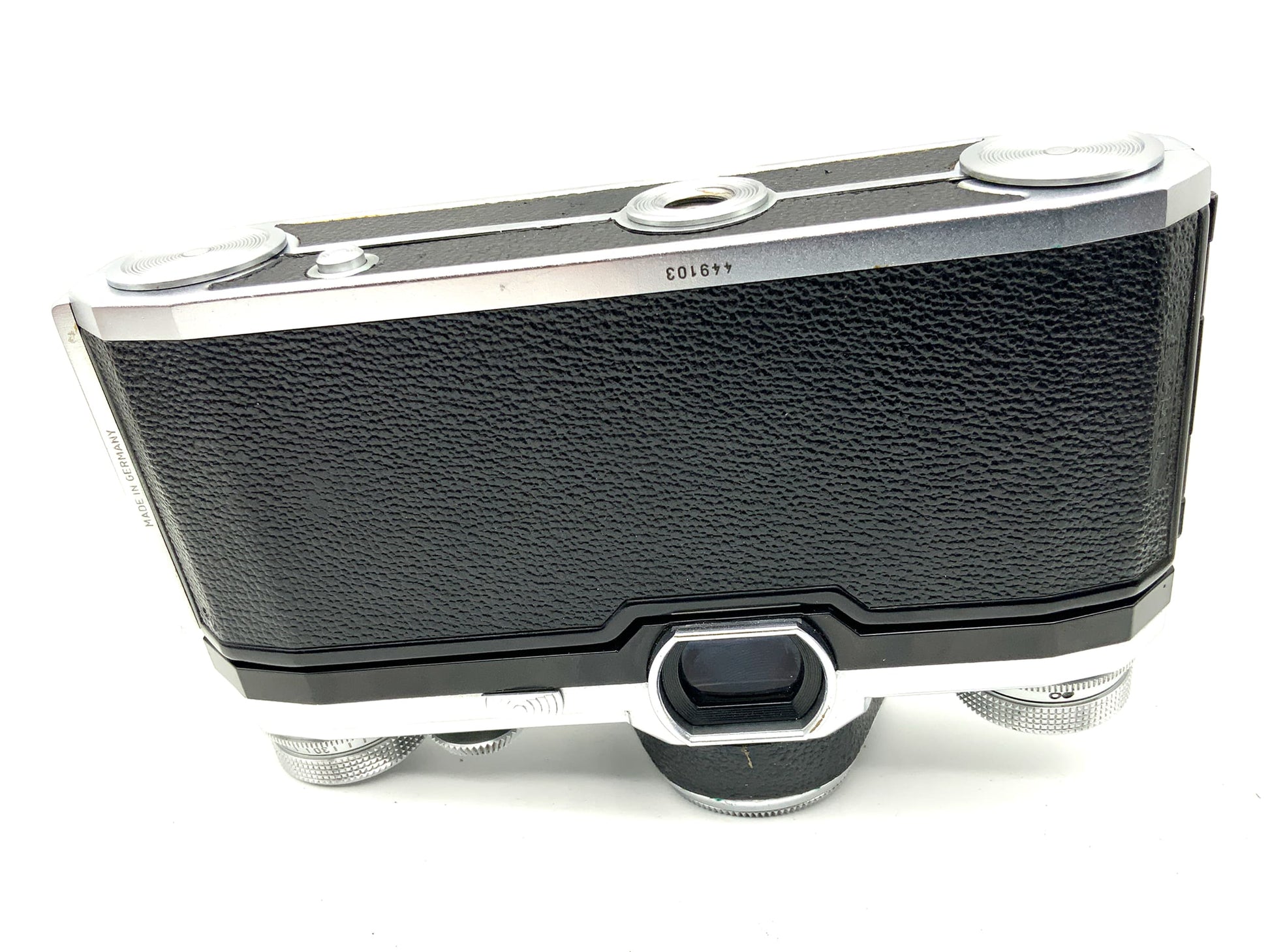 This analog SLR camera has been inspected and has one technical defect: the light meter is not working. All other functions – such as the shutter release, film advance, and shutter mechanism – have been tested and are working reliably. The optical condition is rated as acceptable or better. A detailed explanation of our condition categories can be found in our FAQ for analog cameras .