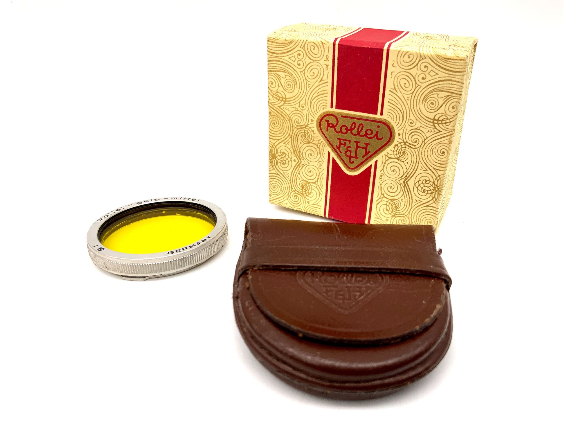 Rollei color filter, yellow, medium, in original packaging, circular filter thread.