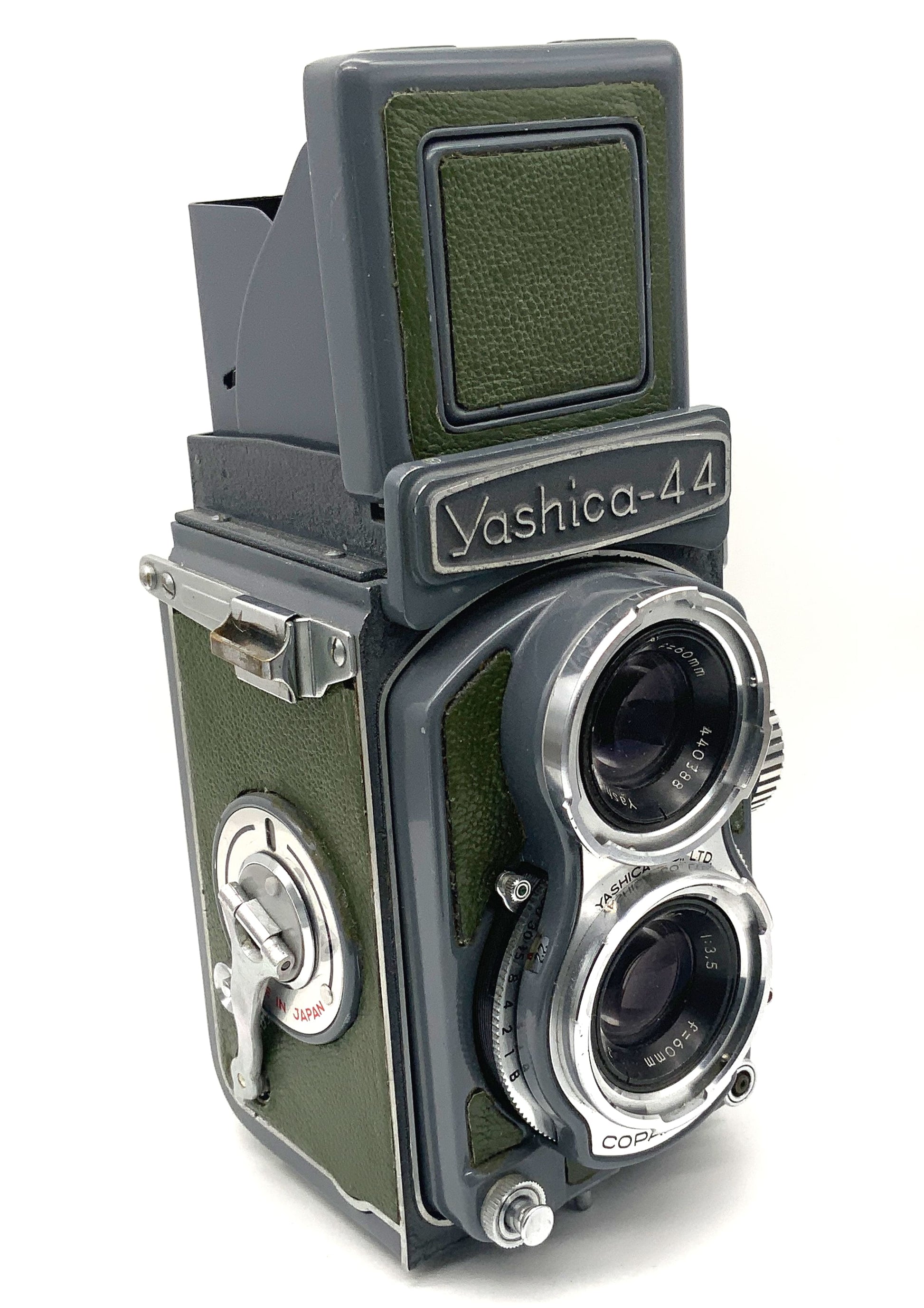 Diese klassische TLR-Kamera (zweiäugig) vereint analoge Technik mit ikonischem Design. Sie wurde sorgfältig geprüft und ist voll funktionsfähig: Der Verschluss löst sauber aus, der Filmtransport funktioniert zuverlässig und der Lichtschachtsucher liefert ein klares Bild.